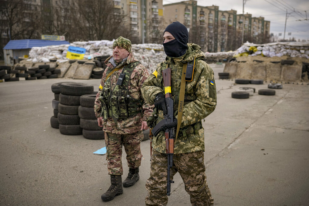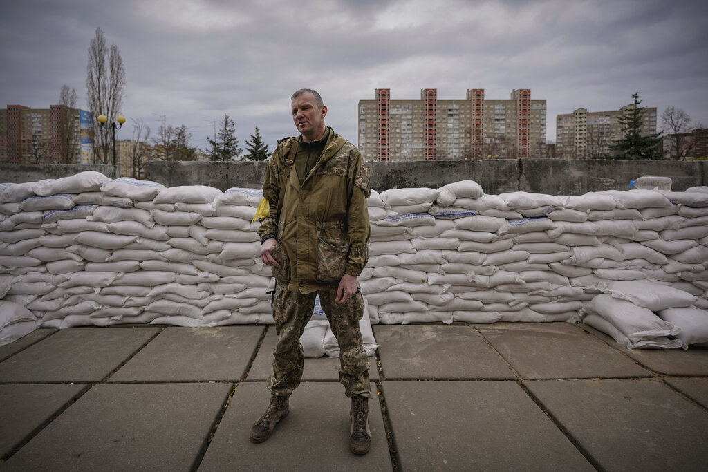 In the capital, Kyiv, soldiers and volunteers have built hundreds of checkpoints to protect the city of nearly 4 million, often using sandbags, stacked tires and spiked cables. Some barricades looked significant, with heavy concrete slabs and sandbags piled more than two stories high, while others appeared more haphazard, with hundreds of books used to weigh down stacks of tires.
