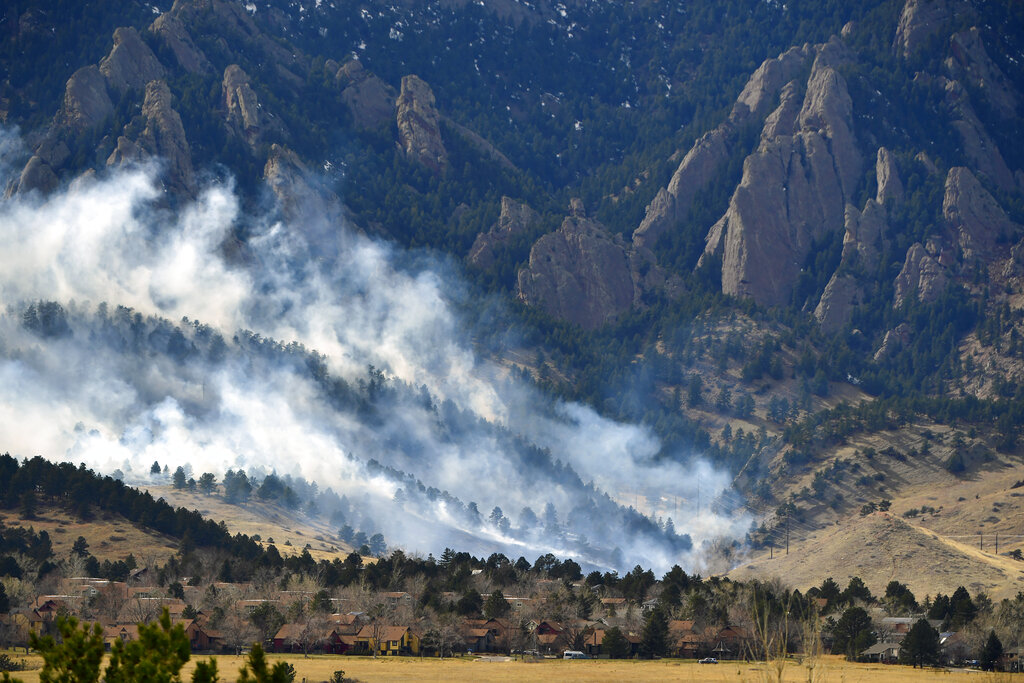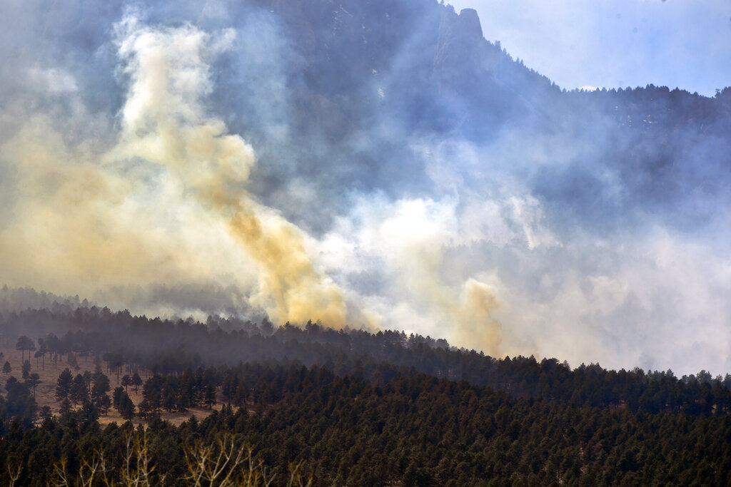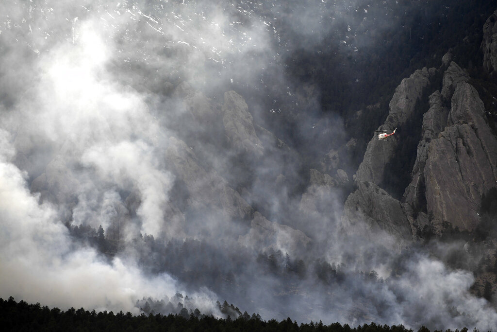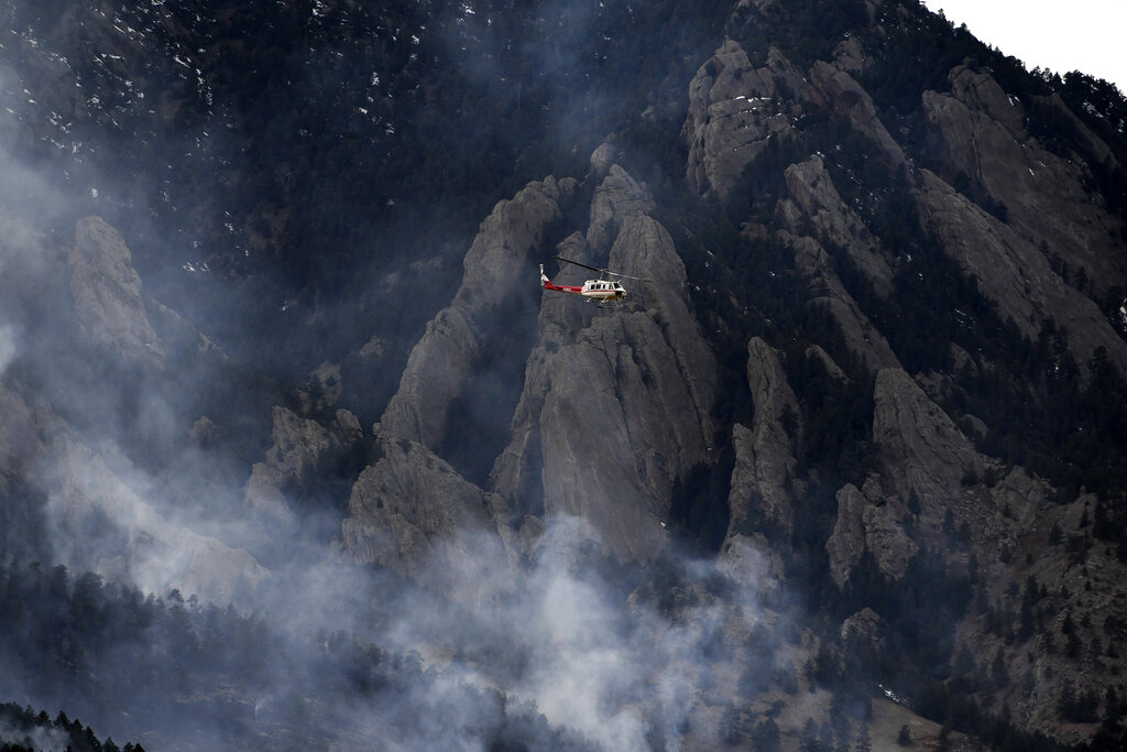Work on Sunday focused on reinforcing the fire line and making sure the fire didn’t burn toward the city of Boulder or down toward Eldorado Canyon, Smith said. Crews were working to corral the fire into an area of rocks and snow.