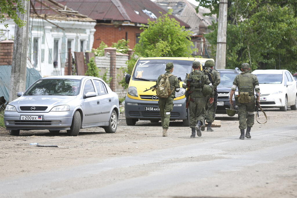 The Associated Press filmed military vehicles bearing the pro-Kremlin “Z” sign escorting a convoy of buses carrying the troops, as Soviet flags fluttered from poles along the road. About two dozen Ukrainian fighters were seen in one of the buses.