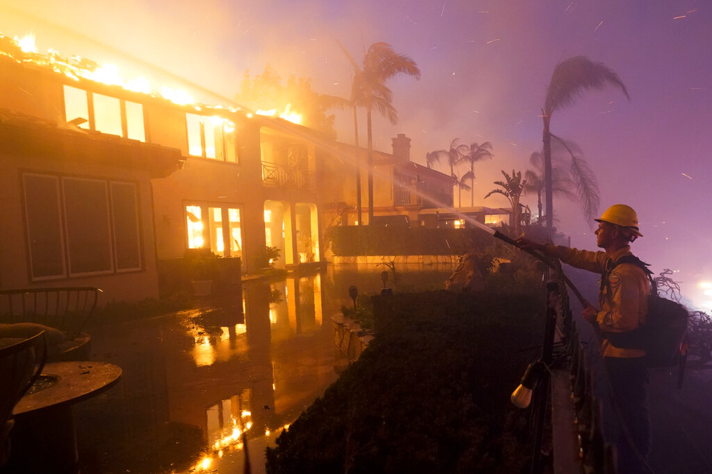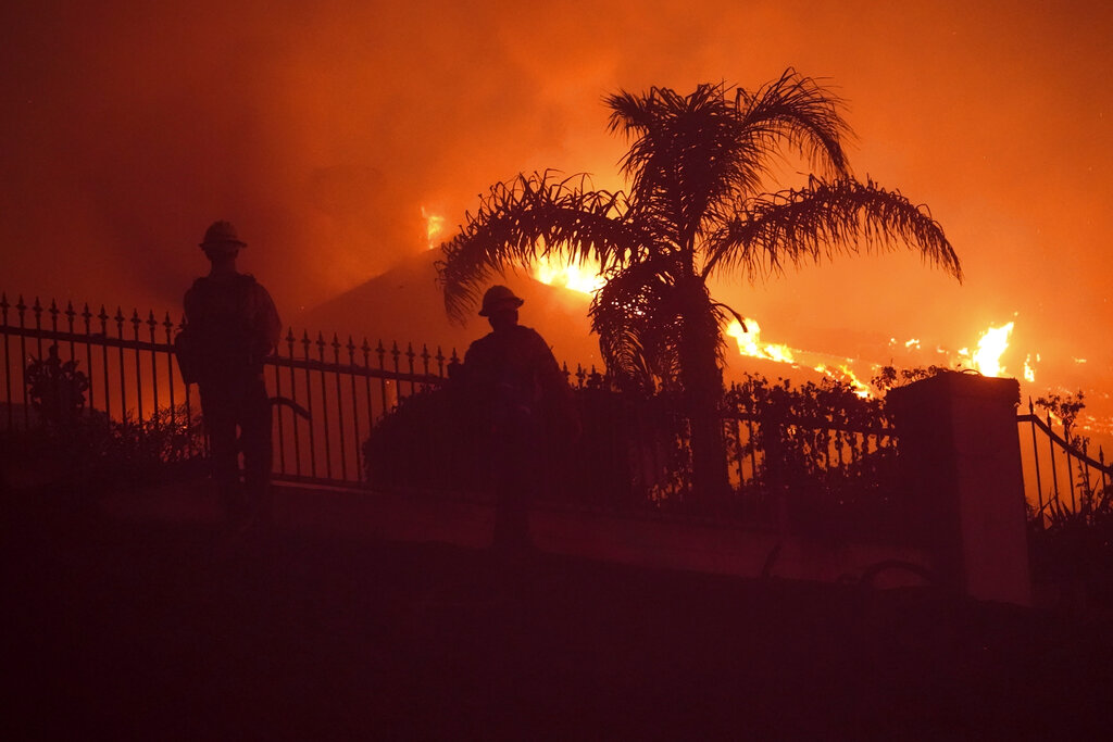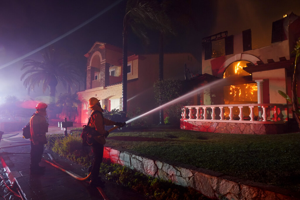 Meanwhile, a wildfire that erupted Wednesday afternoon in coastal Southern California raced through coastal bluffs of multimillion-dollar mansions, burning at least 20 homes, fire officials said. The flames were fanned by gusty ocean winds but they were dying down Wednesday night. No injuries were reported but several streets were ordered evacuated.