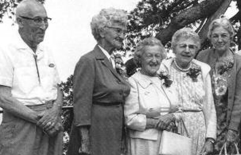 Palm Springs pioneers Carl Lykken, Zaddie Bunker, her sister Henrietta Parker, Katherine Finchy and Zaddie’s daughter, Francis Bunker Strebe, at the top of the tram. Photo courtesy of the Palm Springs Historical Society