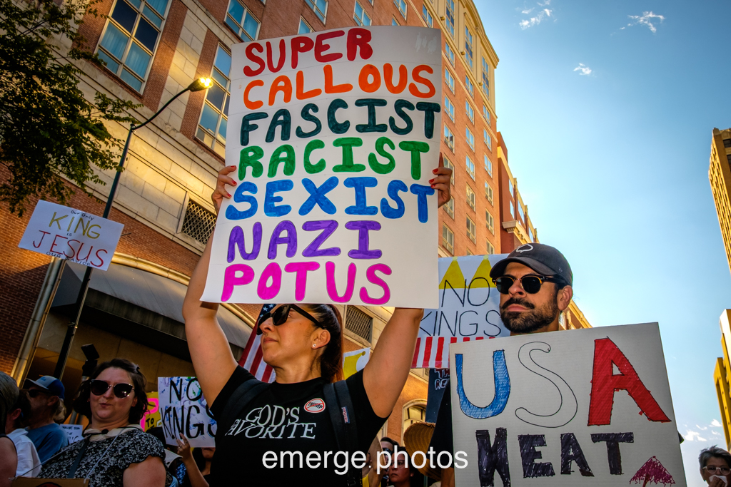 And yet part of the specific danger of this moment lies in the reality that the United States seems to be sliding toward “competitive authoritarianism,” as in Hungary or Russia—where a country technically still has elections, courts, and congress but in effect has one-party rule by a dictatorial strongman—according to consensus among political scientists and national security experts. Toward that end, No Kings participants also called attention to the urgency of action beyond the standard get-out-the-vote messaging of other moments.