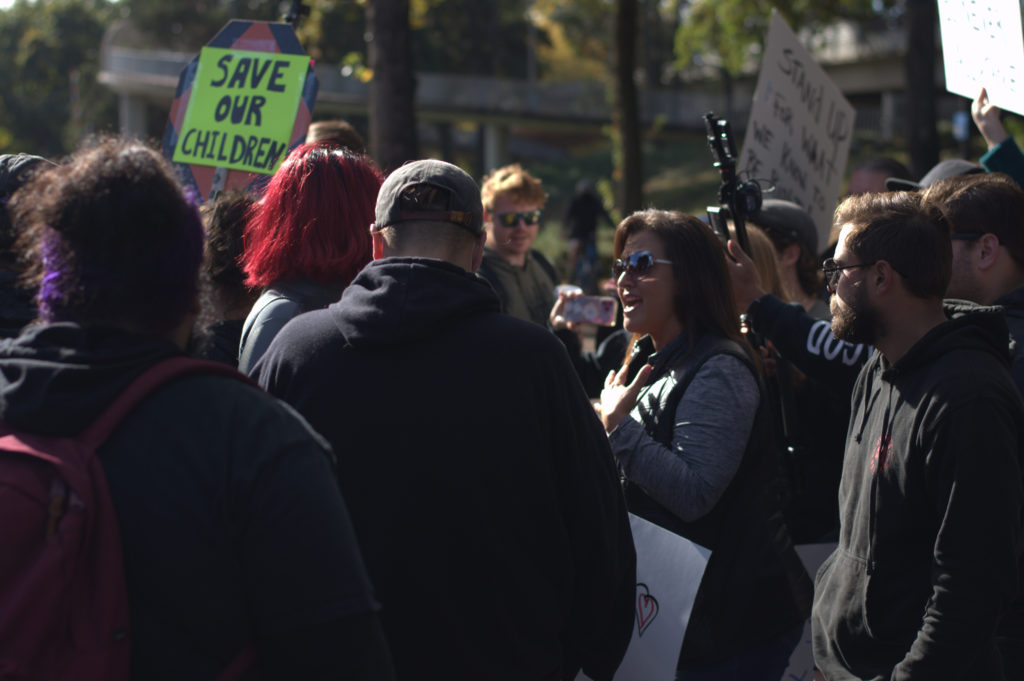 The event grew more and more confrontational even after a counter-protester, Kristine Chadwick, was punched in the face by a protester. “He thought I was trying to tear down his sign so he hit me in the face,” Chadwick said. She said was there to show her support for Vanellope as well as the rest of the drag community.