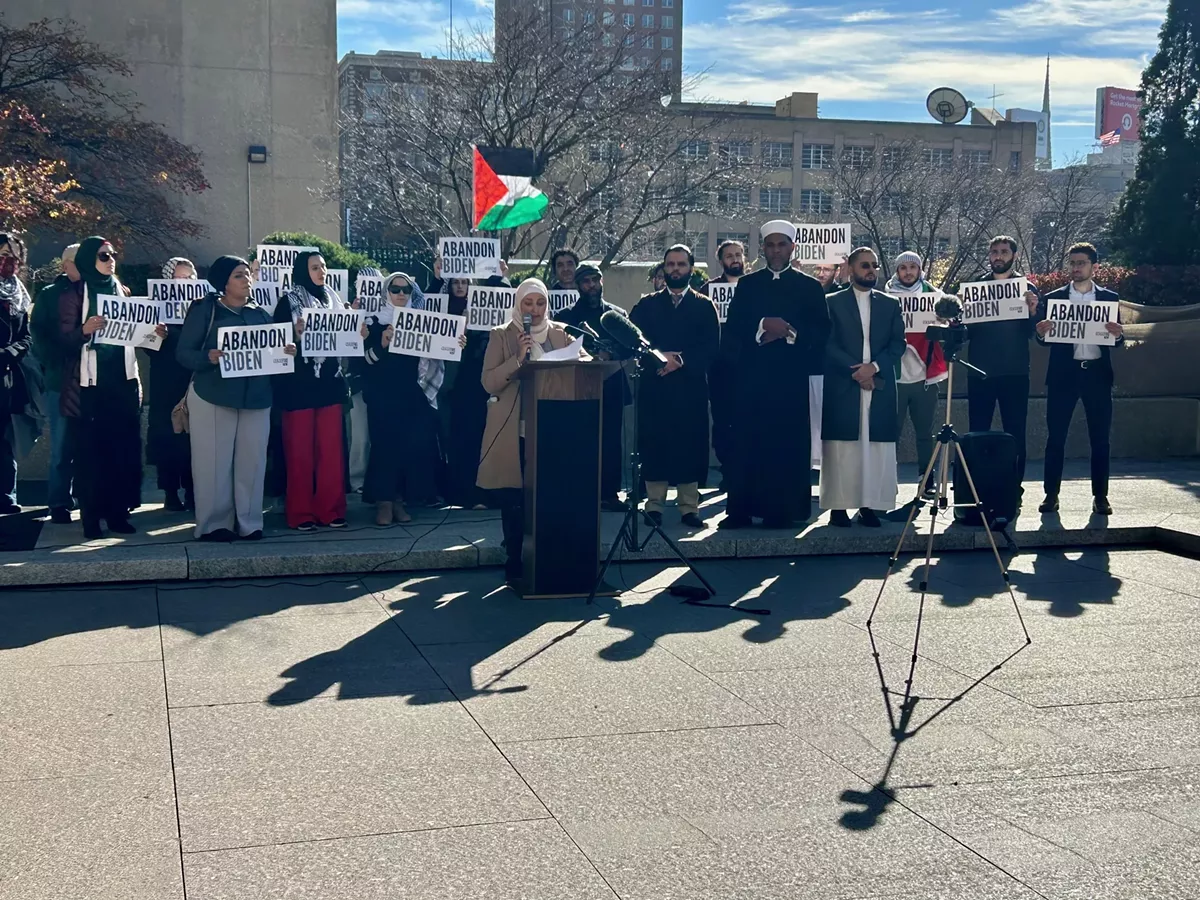 Local Muslim leaders and Palestinian Christians gathered in downtown Detroit on Thursday afternoon, vowing to drive President Joe Biden out of office for failing to support a ceasefire in Gaza that could save thousands of lives. About 30 people, many holding signs that read, “Abandon Biden,” stood outside the federal courthouse to pledge to make Biden a one-term president.