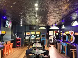 The orange and black pixelated sign for Arcada (660 K St., Arcata), reminiscent of Space Invaders, hung as a question for the past two years. The retro arcade bar for grownups opened in the last week in February of 2020 only to shut down two and a half weeks later when Public Health declared a shelter-in-place order in response to COVID-19. To pass the lavender building that once housed the Other Place was to be reminded of thwarted plans and nostalgia for old times — whether the 1980s or just three years ago, when we couldn’t imagine hanging out with friends or strangers for a beer and a couple rounds of pinball could ever be fraught. Kristen “P-Nut” Thompson and her wife Amber Saba, who also co-own Slice of Humboldt Pie, reopened Arcada May 10 after a little more than two years closed. The virus that shuttered the place is still with us, making their mission of low-key escapism more of a challenge. Still, Thompson says, “We want you to come and be a kid for a moment and not have to worry about everything. Be 12.” “They would not let this place be open for a very long time, which I totally understand,” says Thompson of the restrictions on bars and restaurants over the course of the pandemic thus far. She adds that, truth be told, she and Saba weren’t ready, either. They’d pared down to themselves and one other staffer at the pie business, which has a patio they were able to seat customers in once outdoor dining was allowed. “We really took it step by step in terms of our comfort and our employees,” says Thompson. Takeout sales, selling pies and empanadas at Eureka Natural Foods and other restaurants, along with Payroll Protection Plan loans kept Slice of Humboldt Pie running and even allowed Thompson and Saba to gradually add more staff. But Slice of Humboldt Pie, which they started in 2013, required their full attention and takeout sales from the bar menu at Arcada weren’t worth keeping it open. So they shut it down, using the kitchen for dispersed prep work, and waited. Inside, under a black tin ceiling, the walls are crowded with arcade games housed in vintage cabinets, most with drink stands beside them to hold your choice from among the eight beers on tap and a wide breadth of cans that includes 11…