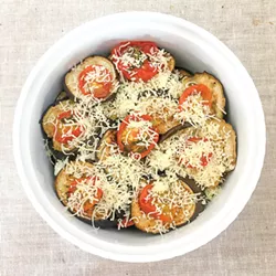 When I turn the wall calendar to the September page, I go into denial about the approaching end of summer. At the farmers market, I continue purchasing summer produce until the last day it’s available. Preserving produce also helps keep summer alive in the kitchen. For example, in the recipe I am sharing here, the two vegetable ingredients — eggplant and tomatoes — can be frozen after roasting, so you can prepare the dish in the middle of winter, when a reminder of warmer, longer days is welcome. The third ingredient is cheese, two types of it to be precise, one being fresh chèvre. Given its versatility, a disk of Cypress Grove’s fresh goat milk cheese is a trusted presence in my refrigerator. Recently, I was invited to try two new flavors of the cheese, Meyer Lemon and Honey and the limited edition Hatch Chile, and, with samples provided by the local company, I went on a little creative journey with them. Meyer lemon and alfalfa honey provide a bright, sweet note to the tangy cheese, while flame-roasted Hatch green chiles give the other variety an earthy, mildly spiced flavor. The flavors are well balanced, giving each cheese a charming personality. You can enjoy them au naturel on bread or crackers as appetizer or for a snack (remember to take the cheese out of the refrigerator an hour before eating) or add it to dishes. There are also serving suggestions on the Cypress Grove’s website (cypressgrovecheese.com), but here are a trio of other ideas I tested with excellent results: Dress a pound of steamed green beans with vinaigrette and toss. Add a peach, peeled and cut into bite-sized pieces, and some crumbled Meyer Lemon and Honey cheese. Toss again and enjoy. Serves 3 to 4 as a side dish, but I confess I cleaned the bowl all by myself. As delicious dessert for two, I baked an Asian pear, halved and cored, for 20 minutes at 400 F, cut side up, then put a dollop of the Meyer Lemon and Honey cheese in the hollow and let it warm before serving. I am waiting for persimmon season to start to further experiment with fruit. If you have leftovers of the Roasted Eggplant, Zucchini and Tomato in my last column (“Farmers Markets, Summer Produce and Joy,” July 22), warm them up, then dot the surface with some crumbled Hatch Chile cheese…