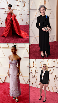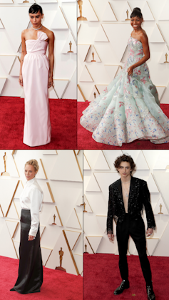 There was Jessica Chastain in sparkling copper and lavender custom Gucci, Lily James in thigh-revealing pink Versace, Zoë Kravitz in Audrey Hepburn-esque delicate pink Saint Laurent sheath, Kodi Smit-McPhee in powder blue Bottega Veneta and the 15-year-old stars of King Richard, Demi Singleton and Saniyya Sidney in lilac Miu Miu and pale blue and pink Armani Privé, respectively.
