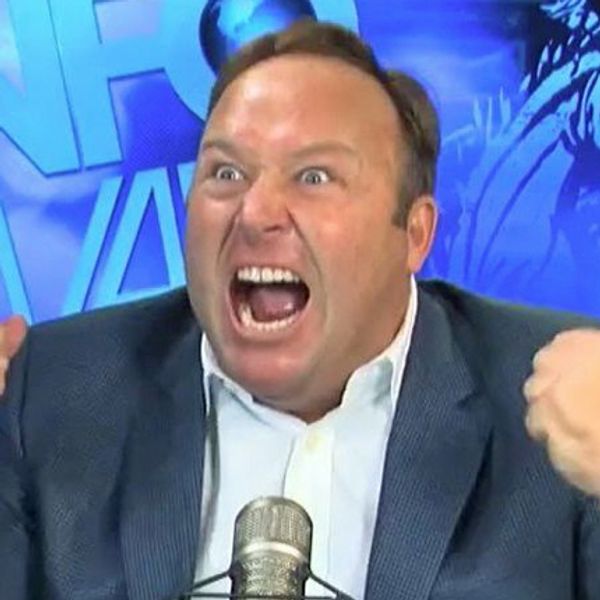 Yesterday Jones said emphatically that he now believes the Sandy Hook massacre is “100 percent” real. But he also said that the federal government was involved in some kind of cover-up of it. Jones has said in the past, after being sued by the plaintiffs, that he believed it was real. He’d then go back to the original conspiracy theory.