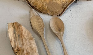 What I gained from the January 29 Snow Season “Spooning” workshop at Montpelier’s North Branch Nature Center: 1) hands-on education in which trees yield softer wood receptive to the efforts of neophyte carvers, and 2) slightly more confidence when using hatchets and other digit-threatening tools. What I did not gain: a hand-carved wooden spoon. Ken Benton, the nature center’s director of education, foreshadowed that possibility during his introduction, cautioning, “Don’t expect to come away with a perfectly finished spoon.” The knowledgeable and extremely patient workshop leader reminded participants that the five-hour event was the kitchen-utensil version of a farm-to-fork meal, in which diners follow their food from source to plate. Many spoon-carving workshops start with a prefinished block of wood — called a “blank” — in a rough spoon shape. This forest-to-spoon session entailed venturing out among the trees, harvesting raw material, hacking small logs down to size and then carving them into spoons. “We could start with a spoon blank,” Benton said, “but then you wouldn’t know how we got to that point.” Crafting an ostensibly simple spoon began to seem as magical and unobtainable as Rumpelstiltskin spinning gold from straw. “I’ll never look at a hand-carved wooden spoon the same way again,” agreed Rebecca Hill, 66, of Montpelier. She had signed up in search of a relaxing hobby but admitted that Benton’s overview struck her as “a bit daunting.” Hill reflected that she shouldn’t have been surprised: “We’re starting with a piece of a tree and making it into this beautiful, smooth, usable object.” Under softly falling snowflakes, Benton guided the group into the trees, explaining how to identify species and gather the best carving wood. He always harvests from downed limbs or trees that need pruning. “I go with what nature gives me,” he said. We carried logs of black willow, basswood and butternut to our chopping blocks. Everyone picked up hatchets with varying degrees of confidence — zero, in my case. Students, who had paid $50 for the workshop, ranged in age from thirties to seventies and hailed from as far as Wheelock. Tom Shughrue, 61, had recently retired to Websterville from Dallas. He was looking for something to do over the “very long winter,” he said. Marissa Gerdes, 33, and Luke Spencer, 31, relocated five months ago from Ohio to Barre, where Spencer landed a teaching job. The couple are cultivating…