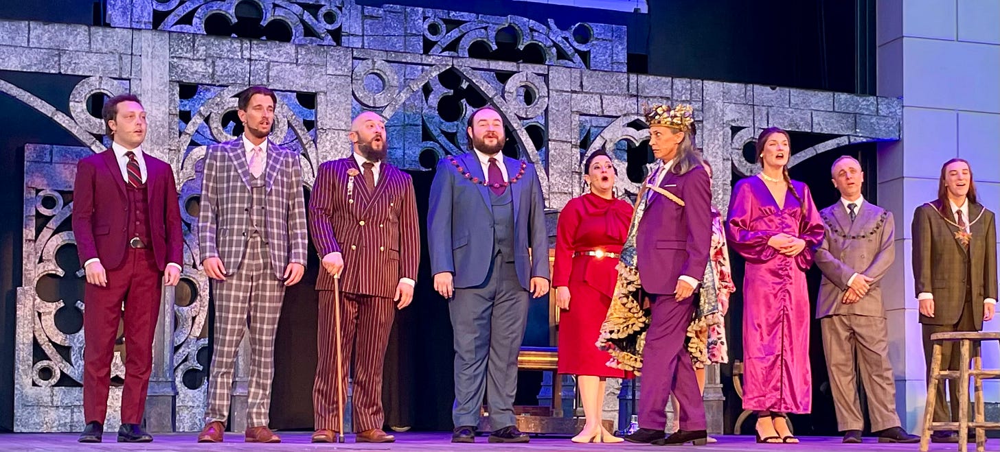 In a turnabout of the tradition of men portraying women on stage that dates to ancient Greece, the king is played by actress Amy Simms.