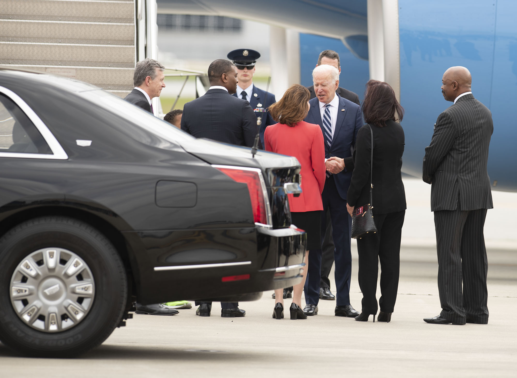 On Tuesday afternoon, President Biden visited Greensboro on a stop during his tour to pitch the Bipartisan Innovation Act. He landed a little later than scheduled, around 2:30 p.m. at the Piedmont International Airport where he was greeted by Governor Roy Cooper, Congresswoman Kathy Manning, Greensboro Mayor Nancy Vaughan and Guilford County Commission Chair Skip Alston. Afterwards, Biden promptly visited NCA&T State University’s campus, first starting with a tour of science labs and classrooms by students before addressing an audience in the Alumni-Foundation Event Center. The center, which was filled to capacity, included several elected officials such as state representatives, city council members, county commissioners and the sheriff.