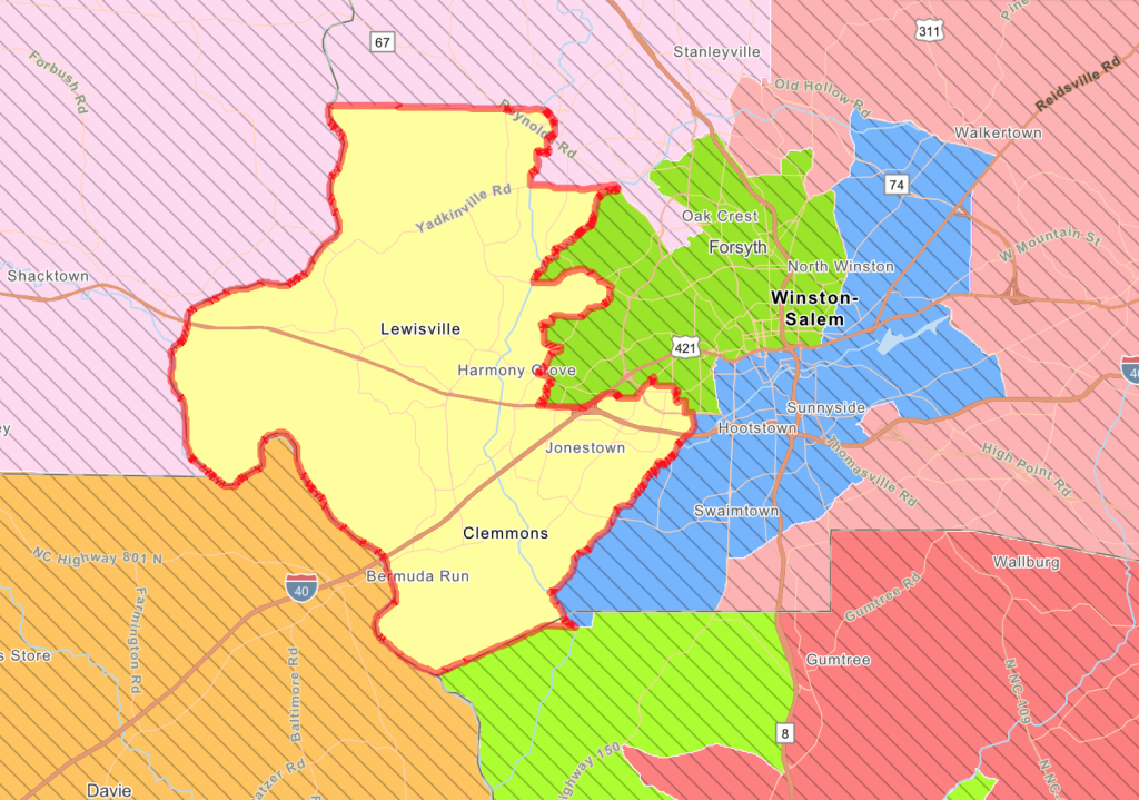 District 74 covers southwestern Forsyth County and includes the towns of Lewisville and Clemmons.